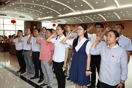 會(huì)議由公司黨委副書(shū)記、勘測(cè)公司總支書(shū)記、董事長(zhǎng)趙健倉(cāng)同志主持,黨委委員、設(shè)計(jì)公司總經(jīng)理朱太山同志宣讀了公司黨委表彰決定,工程規(guī)劃院黨支部等4個(gè)“五好”黨支部、楊華軍等35名優(yōu)秀黨員和任云峰等2名優(yōu)秀黨務(wù)工作者身披綬帶上臺(tái)領(lǐng)取了獎(jiǎng)牌和榮譽(yù)證書(shū);14名新黨員面對(duì)黨旗莊嚴(yán)宣誓;豫水國(guó)際黨支部的薛應(yīng)科、勘測(cè)公司的周子?xùn)|作為優(yōu)秀黨員代表在會(huì)上進(jìn)行典型發(fā)言;工程設(shè)計(jì)二院的申黎平、勘測(cè)公司張慶功作為新黨員代表進(jìn)行發(fā)言。