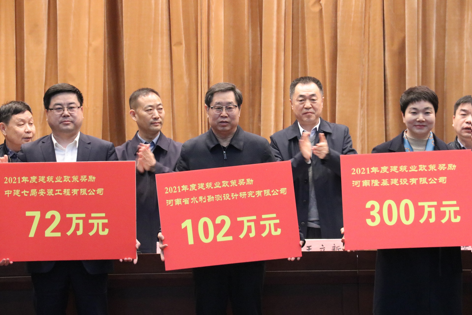 為推動(dòng)鄭州市建筑業(yè)高質(zhì)量發(fā)展,會(huì)上對(duì)2021年取得突出業(yè)績(jī)的103家建筑企業(yè)進(jìn)行獎(jiǎng)勵(lì),公司喜獲102萬(wàn)元。