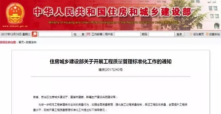 近日,住建部下發(fā)《住房城鄉(xiāng)建設(shè)部關(guān)于開展工程質(zhì)量管理標準化工作的通知》(以下簡稱《通知》)。提出到2020年底,要力爭“全面推行工程質(zhì)量管理標準化”。